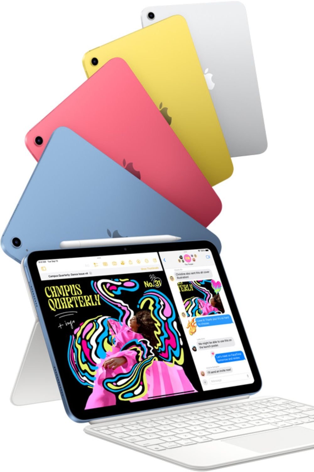 L’iPad 10,9″ (10ᵉ génération) combine un design élégant avec des performances solides grâce à la puce A14 Bionic. Son écran Liquid Retina de 10,9 pouces offre une expérience visuelle immersive, tandis que ses caméras avant et arrière de 12 Mpx permettent des appels vidéo et des photos de haute qualité. Léger et polyvalent, il est idéal pour le travail, les études et le divertissement.